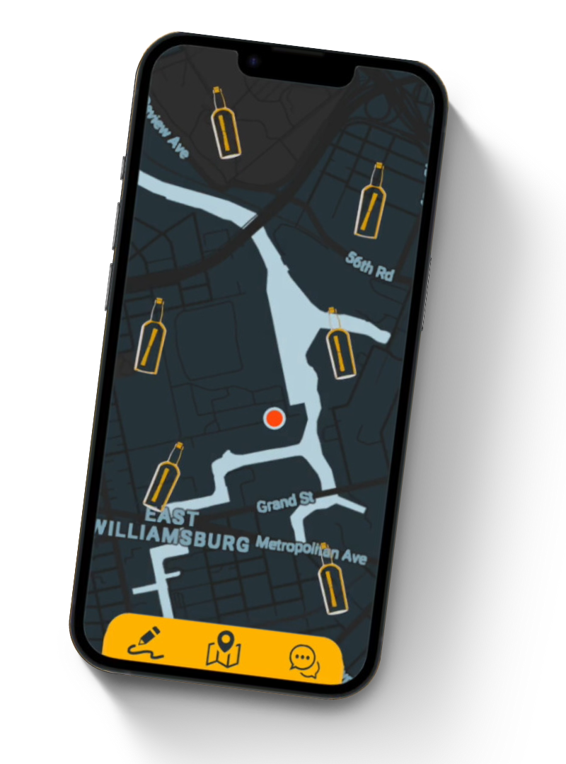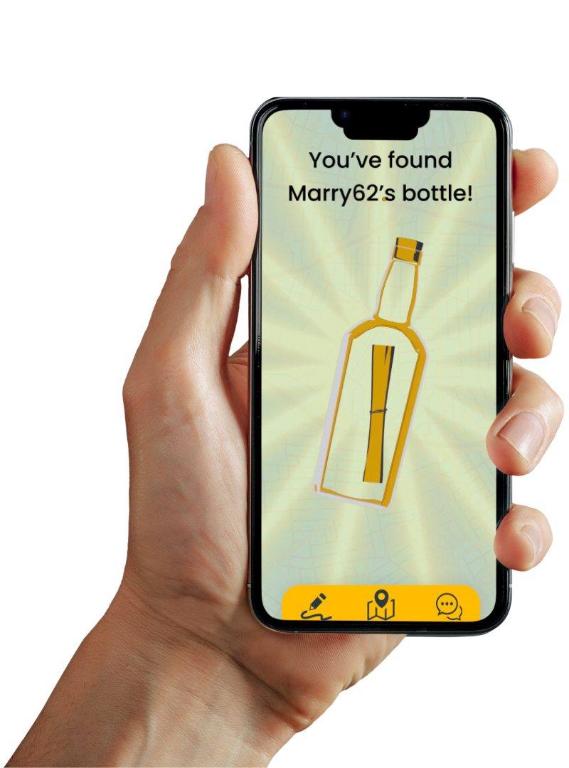 – Drop a Bottle on a chosen location. Wait for others to find it. – Find Bottles left by others. It’s like a treasure hunt. – Meet new people. Same place, different time. What if it was more than a coincidence?
